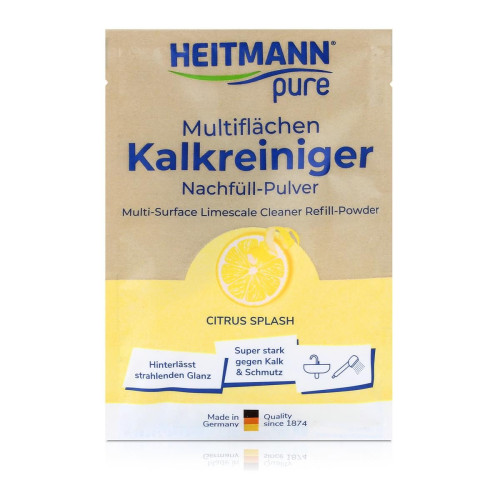 Vanduo – milteliai – purtyti – padaryta! Naudodami HEITMANN gryną kelių paviršių kalkių nuosėdų valiklį, visame namų ūkyje galima efektyviai ir be pastangų pašalinti sunkiai pasiekiamus nešvarumus, tokius kaip kalkių nuosėdos, išdžiūvusios muilo likučiai ir vandens dėmės.